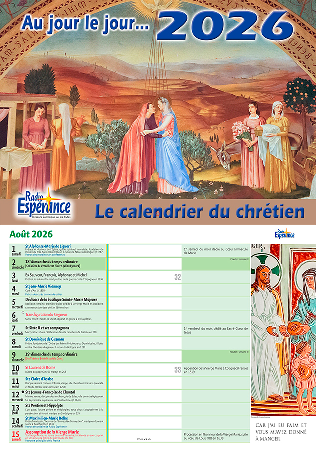 "Au jour le jour 2026", le calendrier de Radio Espérance vous accompagne tout au long de l'année 2026 avec, chaque mois, les prières du chrétien.
